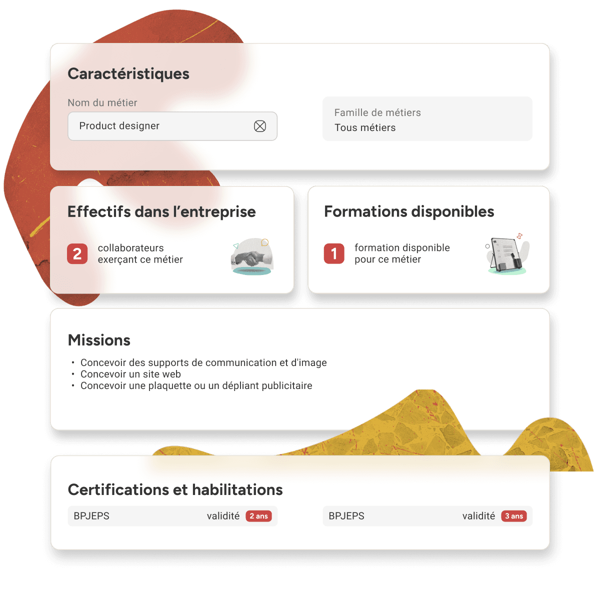 Créez et gérez facilement votre référentiel de compétences par métier, fonction ou équipe. Personnalisez les niveaux, catégories et liens avec vos objectifs organisationnels.