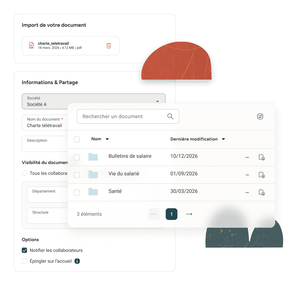 Centralisez et mettez à disposition de vos salariés l’ensemble des documents de la vie d'entreprise (règlement intérieur, formulaire mutuelle...).