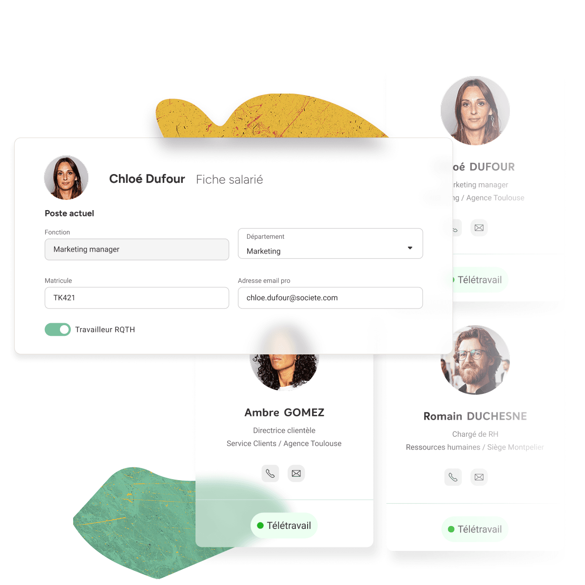 Retrouvez toutes les informations sur vos collaborateurs (coordonnées, rôles, équipes, organigramme…).