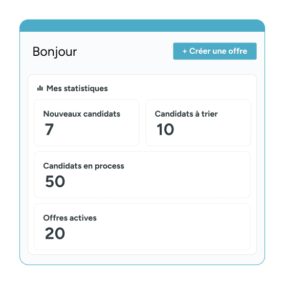 Suivez toutes vos campagnes d’embauche depuis un tableau de bord unique et visualisez en un clin d’œil l’avancement de chaque poste ouvert.